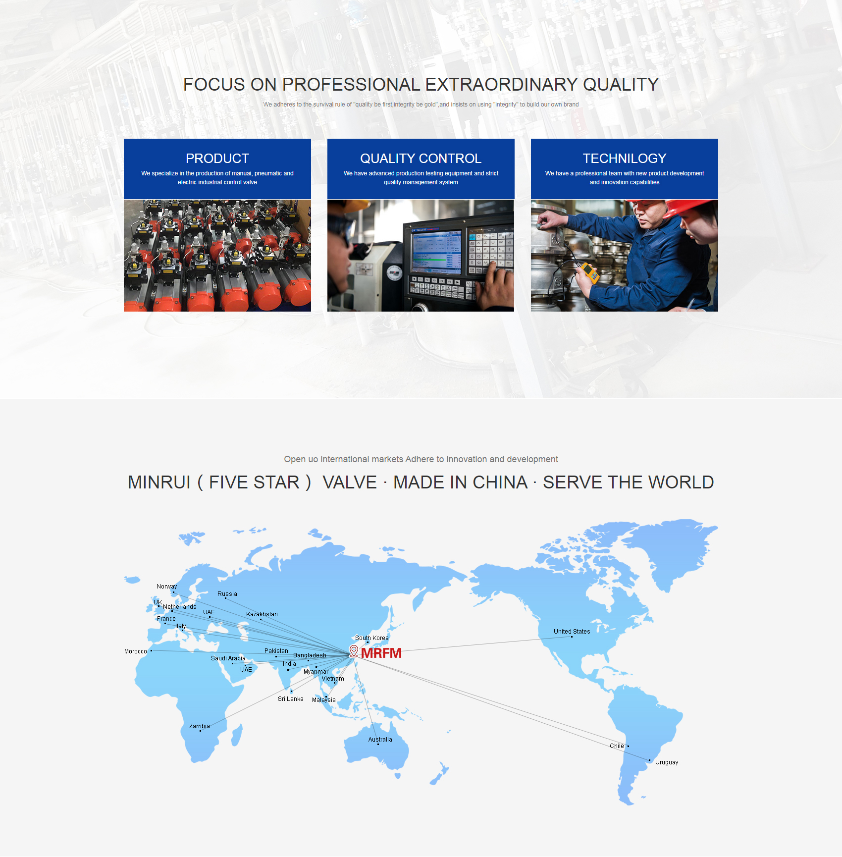 Zhejiang Minrui (Five Star)Valve is a valve manufacturer focusing on the field of valve fluid control, integrating R&D, production, marketing and service. The company has a professional technical team and professional production equipment. We has passed ISO9001 quality management system certification. Our products mainly include: non-standard customized pneumatic valves, electric valves, gate valves, globe valves, ball valves, check valves, regulating valves and etc. The main materials are: SS304, SS321, SS316, SS316L, SS316Ti, carbon steel, titanium, C4 steel, 2507 duplex stainless steel, 254SMo super austenitic stainless steel, Monel alloy, Hastelloy; Manufacturing standards are: American standard ANSI , API, ASME, Japanese standard JIS, German standard DIN.